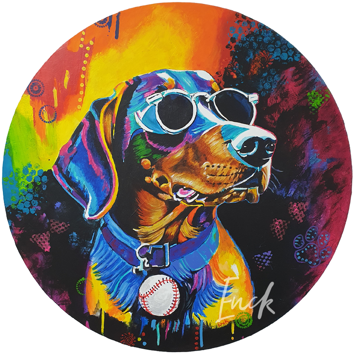 cooler Dackel mit Sonnenbrille (2023) von Krafttiere-artgalerie by Isolde Enck